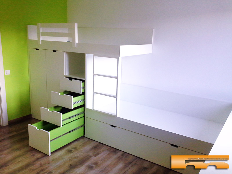 Este Post lo que pretende transmitir es nuestro afán de avanzar, y únicamente lo conseguiremos gracias a ti, que nos propones Proyectos que suponen un reto para nosotros. Los diseños originales, las combinaciones de colores y texturas atrevidas ya sea de literas, armarios o muebles, no tienen porqué ser más caros. Todos los Proyectos que pasan por nuestras manos los tratamos con cariño, pero los excepcionales, ¡los queremos!